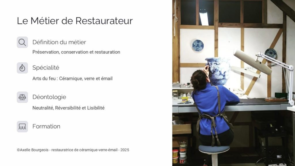 Conférence sur le métier de restaurateur du patrimoine en spécialité céramique, verre et émail